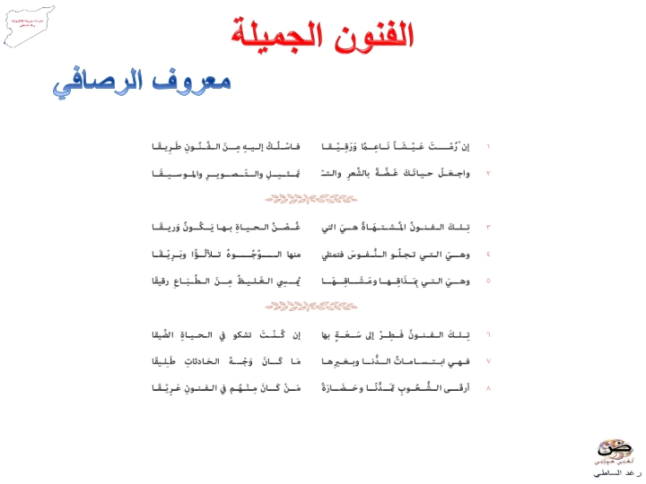 شرح قصيدة الفنون الجميلة في اللغة العربية للصف السابع